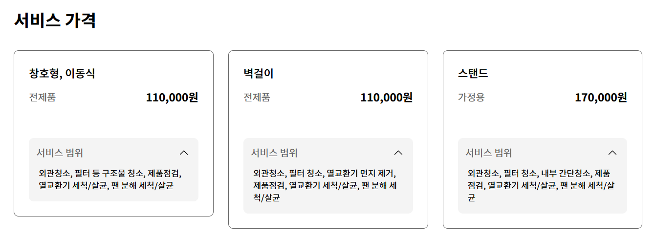 삼성, LG에서 서비스를 제공하지 않는 모델이나 그 외 캐리어 등 다른 브랜드 에어컨을 사용하실 경우 사설 전문업체에서 에어컨 청소를 진행하시면 됩니다.