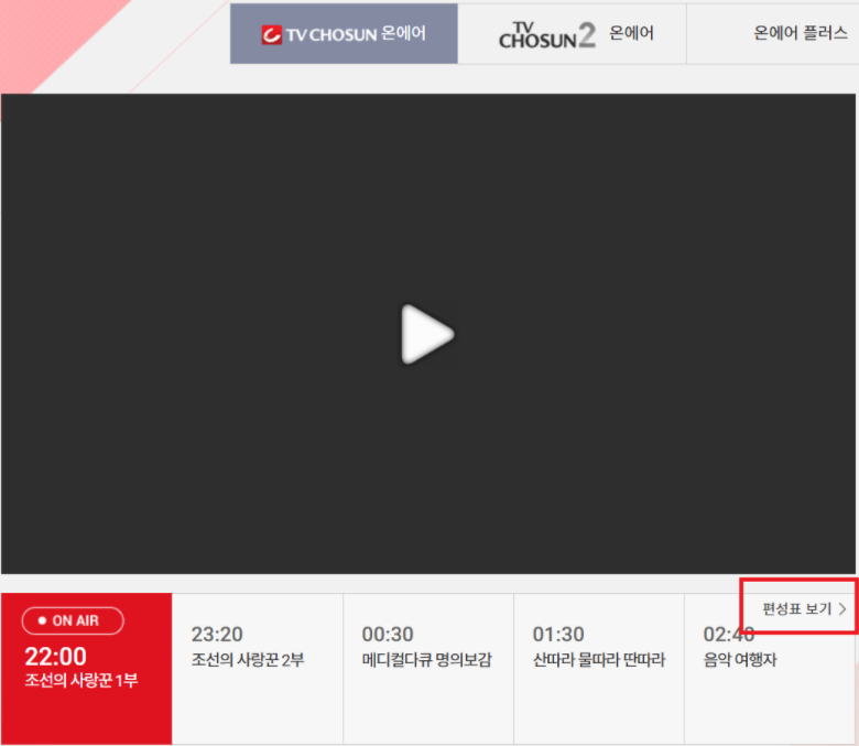 ④ 화살표 표시된 TV조선, TV조선 2, TV조선 3 중 원하는 채널 클릭 → 시청하고자 하는 프로그램 클릭 후 시청
